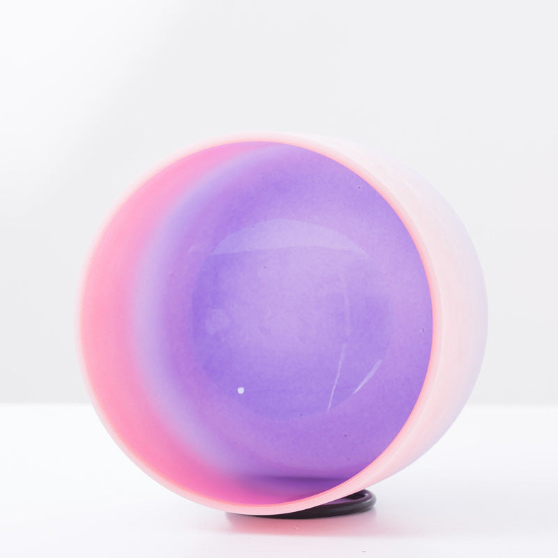 Gradient Crystal Quartz Sound bowl. The upper part is pink, the lower part is purple.