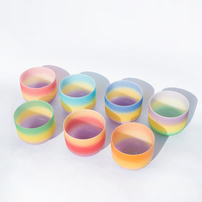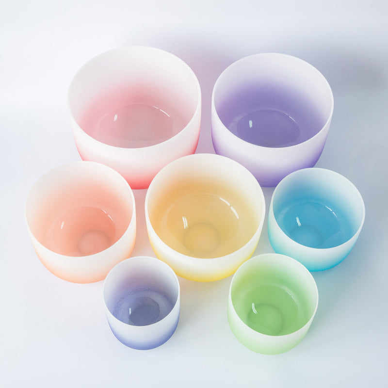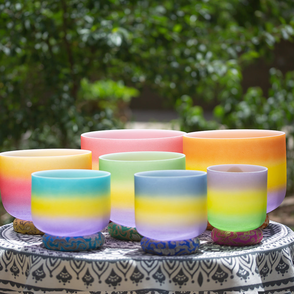 Ensemble de bols chantants en cristal des sept chakras.