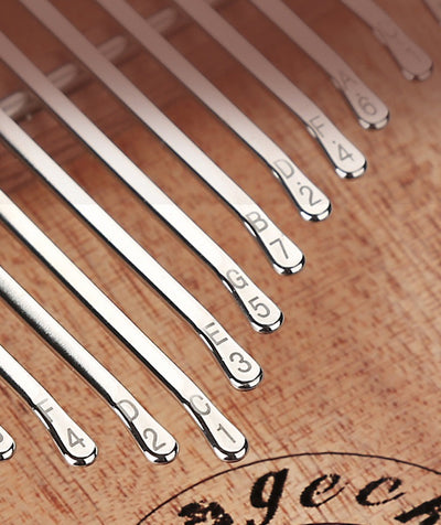 • Kalimbas can have varying numbers of tines, ranging from as little as 5 to 34 or more. Some kalimbas include engraved notes on the tines for better playing coordination.