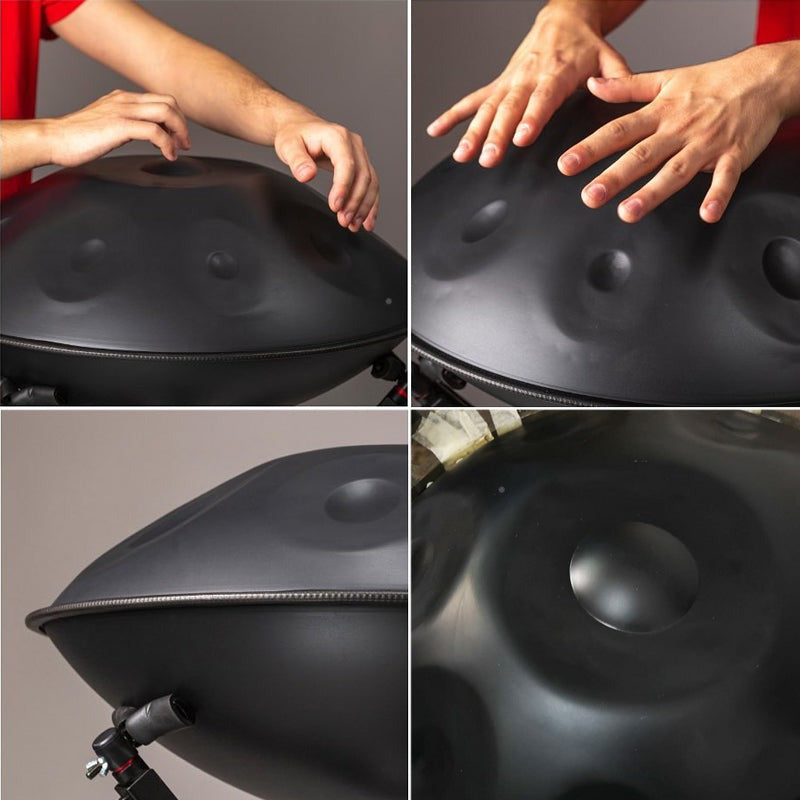• Les handpans peuvent être utilisés avec différents accessoires et équipements, tels que des baguettes, des maillets, des supports et des étuis.