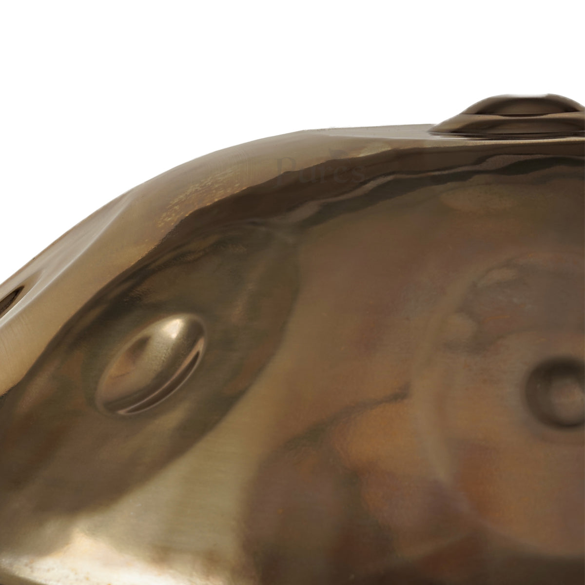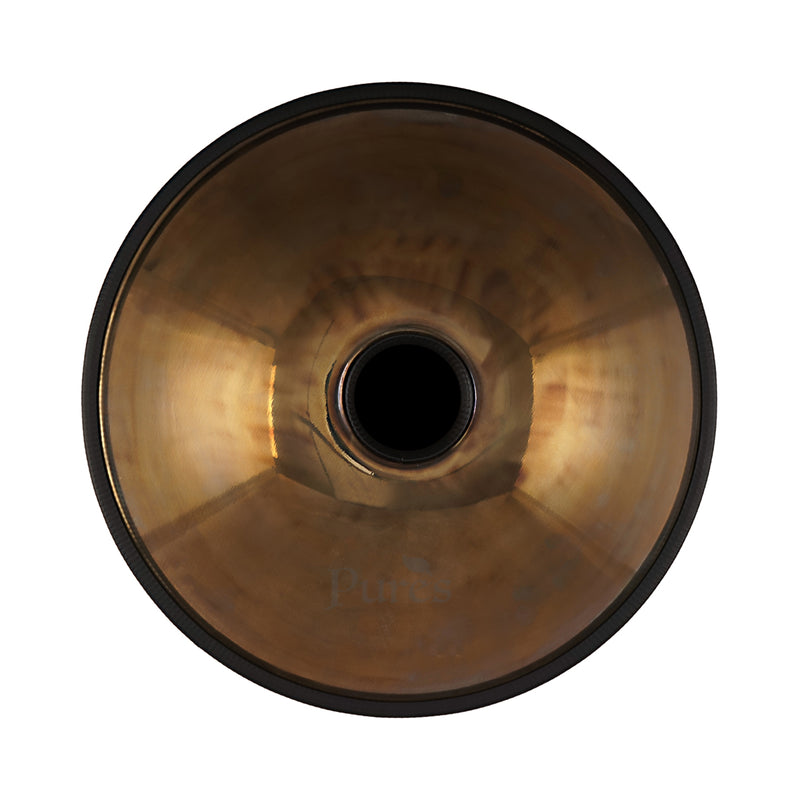 Certaines marques de handpans privilégient ces modèles décoratifs et éclatants, mais la véritable qualité réside ailleurs. La nature offre une meilleure solution : lors de la fabrication, les températures élevées font naturellement ressortir de magnifiques couleurs uniques dans le métal, sans compromettre le son. Ces teintes apparaissent à travers un processus spécifique où la chaleur traverse le métal, révélant ainsi des nuances internes qui ne se limitent pas à la surface ; elles résultent naturellement de la transformation du matériau et correspondent souvent aux sons les plus purs et les plus résonnants.
