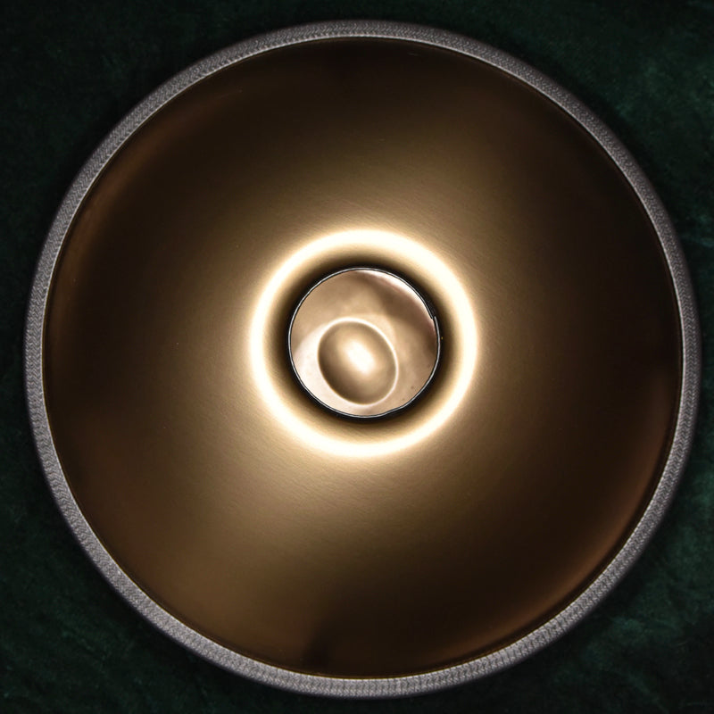 Certaines marques de handpans privilégient ces modèles décoratifs et éclatants, mais la véritable qualité réside ailleurs. La nature offre une meilleure solution : lors de la fabrication, les températures élevées font naturellement ressortir de magnifiques couleurs uniques dans le métal, sans compromettre le son. Ces teintes apparaissent à travers un processus spécifique où la chaleur traverse le métal, révélant ainsi des nuances internes qui ne se limitent pas à la surface ; elles résultent naturellement de la transformation du matériau et correspondent souvent aux sons les plus purs et les plus résonnants.