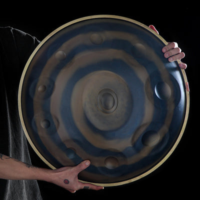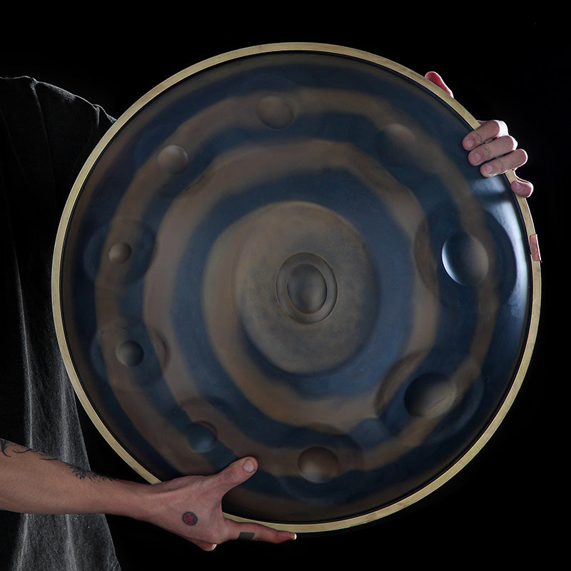 Alcuni marchi di handpan si concentrano molto su questi modelli vivaci e decorativi, ma la vera qualità risiede altrove. La natura offre una soluzione migliore: durante il processo di lavorazione, le alte temperature esaltano naturalmente colori bellissimi e unici nel metallo, senza compromettere il suono. Queste tonalità generate dal calore non sono solo superficiali; sono il risultato naturale della trasformazione del materiale e spesso coincidono con i toni più puliti e risonanti.