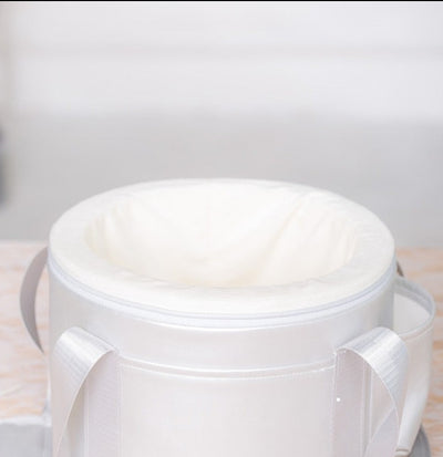 This Clear Crystal Singing Bowl Carry Bag, elegant silver white finish.