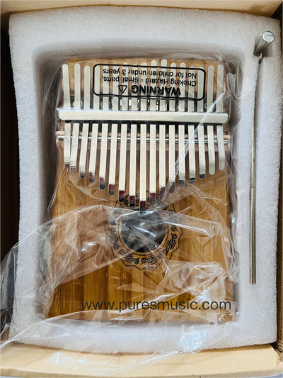 Additionally, kalimbas can be made from a variety of materials, including solid wood, metal, and plastic. While solid wood kalimbas offer superior sound quality, they can be more fragile and may require extra care or a protective case to prevent damage. The design of a kalimba can be solid or hollow, affecting its sound and volume. Some kalimbas, like the AKLOT Electric Kalimba, include built-in pickups for sound amplification through an amplifier. Built-in pickups allow players to amplify the kalimba's sound for performances or recording, making it easier to connect to sound systems and achieve a louder, more professional sound. Kalimbas can also include features like piezo pickups for amplification.