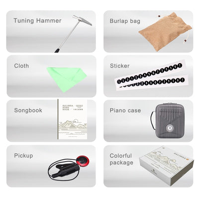 Additionally, kalimbas can be made from a variety of materials, including solid wood, metal, and plastic. While solid wood kalimbas offer superior sound quality, they can be more fragile and may require extra care or a protective case to prevent damage. The design of a kalimba can be solid or hollow, affecting its sound and volume. Some kalimbas, like the AKLOT Electric Kalimba, include built-in pickups for sound amplification through an amplifier. Built-in pickups allow players to amplify the kalimba's sound for performances or recording, making it easier to connect to sound systems and achieve a louder, more professional sound. Kalimbas can also include features like piezo pickups for amplification.