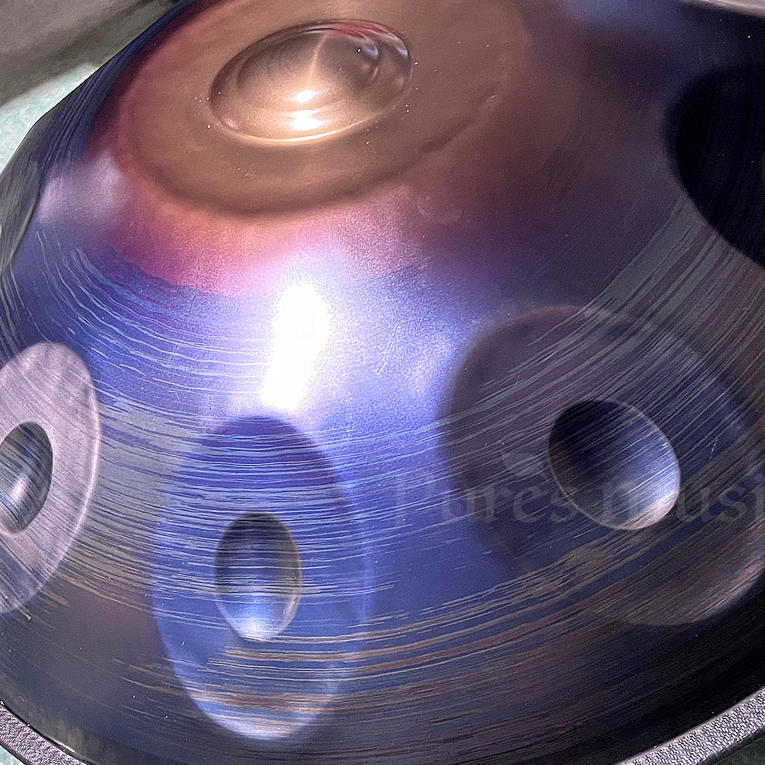 本当に質の高いハンドパン(職人の手作り)は、塗装されていないものです。ハンドパンの色は、高温処理によって自然に生まれるものであり、表面に塗られているわけではありません。