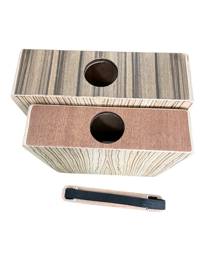 This Travel Cajon Drum features a classic wood color (Top: Maple, Sides: Mahogany, Back: Zebra) and offers a portable design, making it the perfect instrument for on-the-go musicians. Its portable design allows for easy travel while the adjustable sand belt creates a customizable playing experience. With its versatile sound and compact size, this drum allows for convenient and dynamic performance anywhere, anytime.