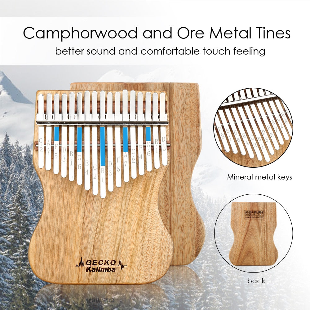 GECKO Kalimba 17 Key B Tone Thumb Piano Full Fineer Kamferhout Small Waist