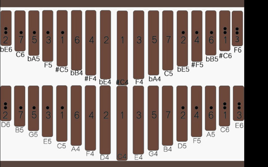 Pures Music 36 Keys Chromatic Kalimba Piano Key Layout Scale Thumb Piano
